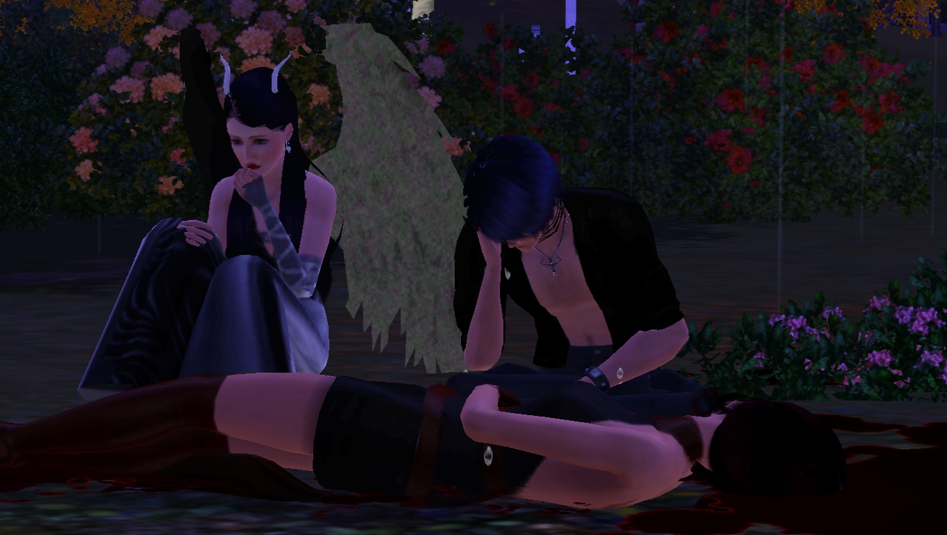 "I sent her here, to watch Mihr, the angel I love. And she died for me, and for Mihr, here on this field. It's my fault..." Zepar finally whispered, unable to look up. Enigma stared at Enepsigos's prone body, and she did not speak a single word.